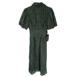 NWT. Elegant green midi dress. Features short sleeves and intricate pattern. Perfect for any occasion. Tuckernuck. Olive green color. Size XS. Sold out on website. Reposting because I purchased and it is too small for me. Beautiful dress!