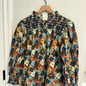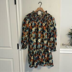 I adore this super stunning brand new with tags Tuckernuck Olivia James The Label orange cream blue cotton smocked long sleeve mini dress