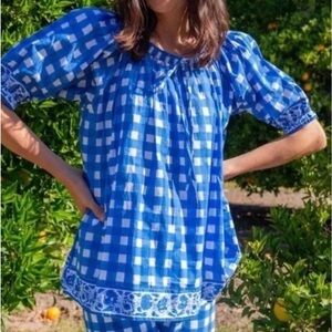 NWT SZ Blockprints from Tuckernuck Blue Gingham Tracy London Top Small