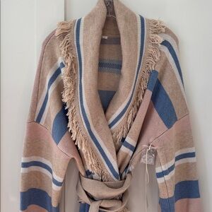 NWT Tuckernuck Tularosa Atlas Blanket Stripe Fringe Cardigan M