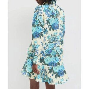 Tuckernuck Wild Zinnia Linen Callahan Floral Shirt Dress Blue Cream