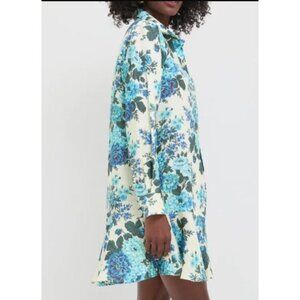 NWT Tuckernuck Wild Zinnia Linen Callahan Floral Shirt Dress Blue Cream Size XL