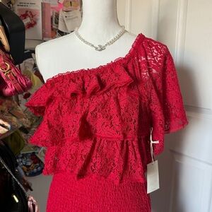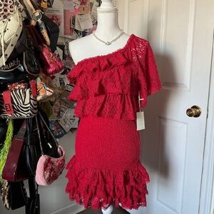 NWT Tularosa Red Asymmetrical Ruffled Bodycon Dress Medium