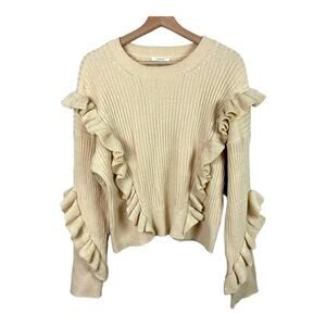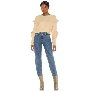 NWT Tularosa Revolve Quinn Ribbed Ruffle Sweater L Large Beige Tan