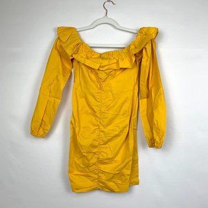 NWT Tularosa Revolve Zuri Off The Shoulder Ruffle Mini Dress Marigold Yellow