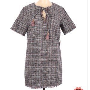 NWT Tularosa Samantha Tweed Tassel Shift Lace Up Mini Dress Medium M