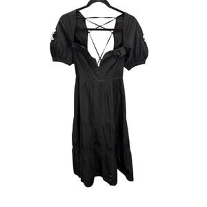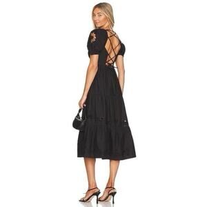 NWT Tularosa x Revolve Black Cotton Midi Dress Puff Sleeves Open Lace-Up Back S