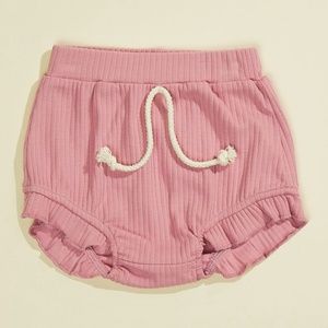 tags: NWT BNWT kids children's baby babies toddler girls pink mauve rose blush pastel ruffle hem shorts rope tie waist comfy comfortable casual spring summer shorts