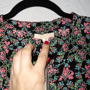 NWT Tulle Black Long Sleeve Neon Floral Print Mini Dress Size Small