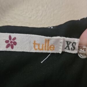 NWT Tulle Women's Size XS Ruffled Neck Dress Metalic Roses Black