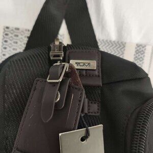 Brand new Tumi Alpha Bravo Monterey Sling Bag in durable tactical ballistic nylon with leather accents. Compact dimensions (14.6"×8.7"×3.5") at just 1.5lbs, featuring water-resistant lining and travel-ready design.