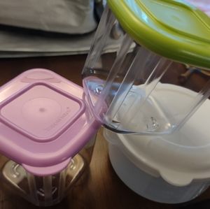 3 new snack containers with lids by Tupperware. Also could be used for sauces or salad dressing.