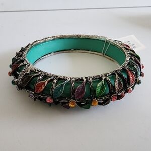 NWT Turquoise Antique Metal Leaf Crystal Tube Beaded Bangle Bracelet