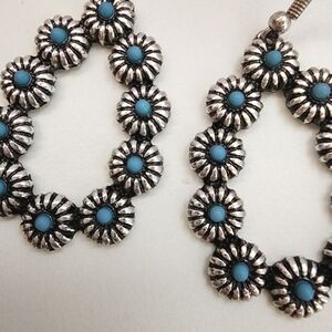 NWT Turquoise Antique Silver Floral Oval Open Metal Teardrop Earrings