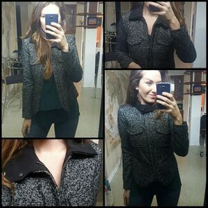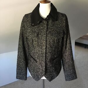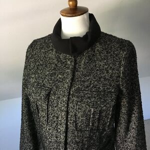 NWT Tweed Wool Blend Boucle Structured Black & White Moto Jacket With Pockets
