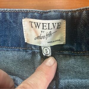 NWT Twelve on Twelth Dark Wash Denim Maxi Skirt S Frayed Hem Asymmetrical