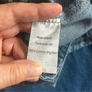 Stylish asymmetrical Highwaisted denim Maxi Skirt. Please see exact measurements. The tag says Dark Wash but I would say it’s more a medium wash. Slit is 20in