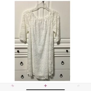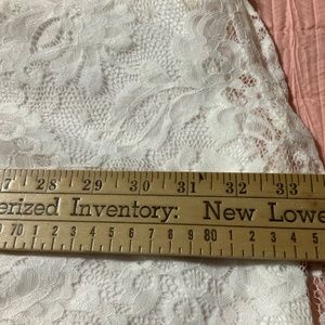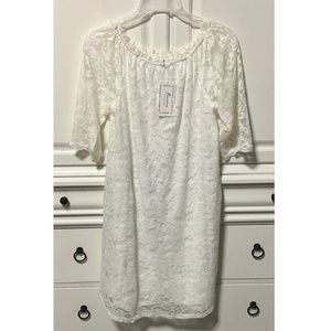 NWT Twink Lady Lace white Dress with lining, Size Large (small large) See measurements above. Perfect little lace dress for that special occasion, elastic neck, pulls over, flares out a little to 26 inches flat at curved hem at bottom, very soft lace not scratchy. This would be suitable for many occasions, would even be cute for a beach cover up. It would even be great to renew vows in.