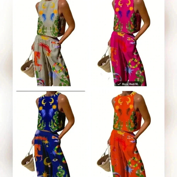 NWT Two Piece Graphic Print Sleeveless Crop Tank and Loose Fit Pant NIP …
