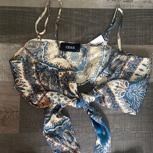NWT. Cider two piece set. Tie front. Adjustable straps. Silky and soft material.