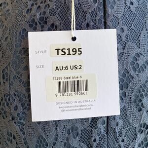 NWT Two Sisters The Label SHIMMY Mini DRESS STEEL BLUE Tassel Hem V Neck US 2 XS