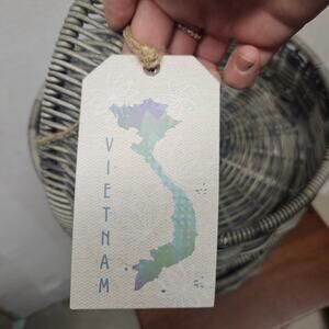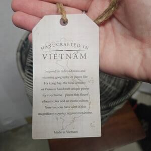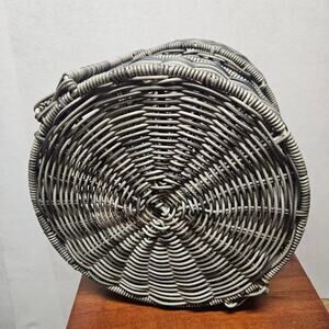 Two Tier Grey Wicker Basket new with tags. Made in Vietnam, brand unknown. Measurements in photos.