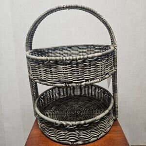 NWT Two Tier Grey Wicker Basket