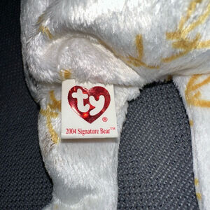 NWT! Ty Beanie Baby 2004 Signature Bear Original Gold & White P.E. Pellets