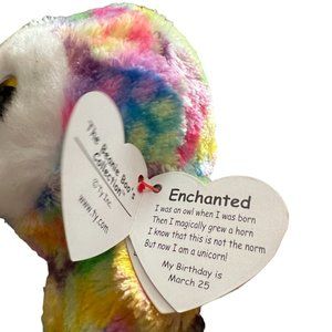 NWT Ty Beanie Boos ENCHANTED Owl Unicorn 8.5" tall x 5" wide Rainbow Tie-dye