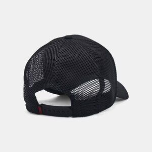 NWT UA Under Armour Essentials Mid Trucker Hat – Black/Red, Snapback, One Size