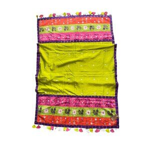 The dupatta is inspired by the traditional motives used by the Rabari tribe. Hand-developed printed borders highlighted with hand-embroidered mirror work makes this entire ensemble perfect for any festive or a family occasion. The dupatta is completed with delicately stitched tassels and shells at both the ends.Looks best paired with the “Dhi” potli bag.