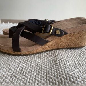 NWT UGG Adalie Cork Wedge Thong Brown Leather Sandal Cushioned Footbed Size 7M