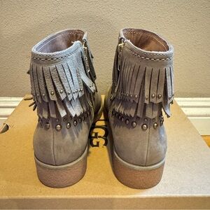 These nubuck ankle boots serve up southwestern flair with layers of fringe and artfully arranged studs.