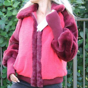 NWT UGG Augusta Sherpa baseball jacket Spanish Red Size S Faux Fur