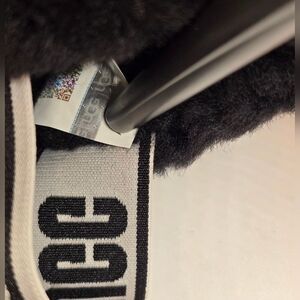 Soft and plush black slides with UGG logo. Ideal for lounging.