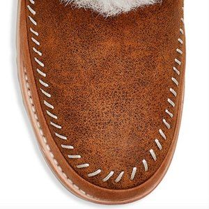 Brand new Bohemian shearling booties with whipstitch and tassel detail zip on for a chic pairing with your skinny jeans.
