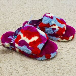 NWT UGG Fluff Yeah Pink Camopop Shearling Slippers Women’s Sz 6