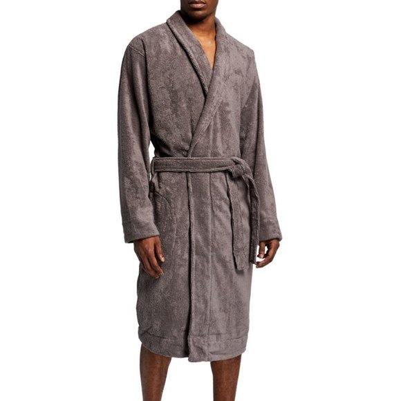 NWT UGG MEN'S RIBBED COTTON TERRY PLUSH ROBE GRAY