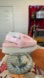 NWT Cozy pink slides with fluffy texture. Elevated platform design. Signature UGG style.