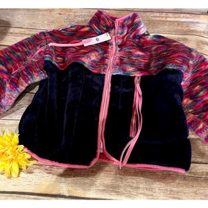 Ugg. NWT. XS. Marlene Sherpa jacket. Absolutely stunning jacket multi color with solid navy. Rare. Full zip faux fur jacket. Stand coller. Side pockets. UGG logo zipper pull. 77% acrylic. 23% polyester. Warm & cozy.