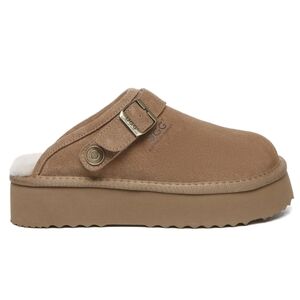 Stay cozy and stylish this season with UGG Sady Buckle Strap Platform Slipper! The fluffy sheepskin and nanotech coating provide warmth and protection from liquids and stains. The sheepskin wool lining and moisture-wicking property keep your feet comfy and dry. The lightweight EVA sole and adjustable strap add safety and versatility, making them a must-have for any woman's wardrobe. Slip them on for effortless style and comfort, or adjust the strap for a trendy clog look. Upgrade your footwear with UGG!