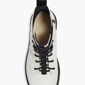 Smooth leather defines this dapper lace-up combat boot boosted by a chunky platform heel and sturdy lugs.
