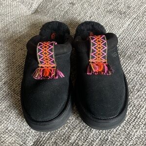 Razzle Tazzle 'em. Inspired by our Classic Tasman Slipper, the Tazzle is an open-back clog with a flattering platform. We've taken a new spin on our signature UGGbraid and reimagined it into a center tassel detail. Made with a suede upper and sugarcane EVA outsole, you can wear this one indoors and outside. Wherever you take them, you'll be cozy in our UGGplush™ wool-blend lining and sheepskin insole