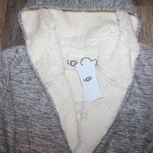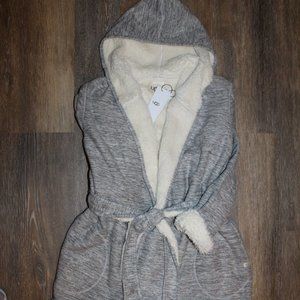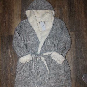 NWT UGG WOMEN'S HOODED REVERISBLE PLUSH BATH ROBE GRAY HEATHER