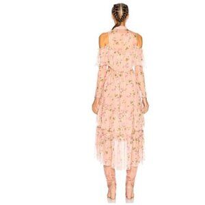 NWT ULLA JOHNSON Pink Marion cold shoulder silk midi ruffle dress size 2