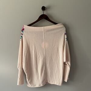 NWT UMGEE FLORAL EMBROIDERED OFF THE SHOULDER CROCHET TOP SMALL OATMEAL