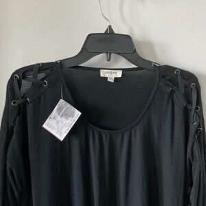 NWT UMGEE USA Round Neck Tunic Top Women's Criss Cross Lace Up Black Size Medium