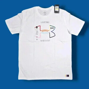UNDER ARMOUR PRIDE SHIRT. MENS MEDIUM PIT TO PIT 21 INCHES, LENGTH 28.5 INCHES. NEW WITH TAGS
