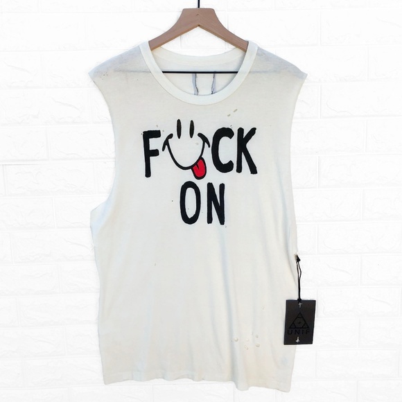 NWT UNIF F*ck On Cut Off Distressed Scoop Neck Top