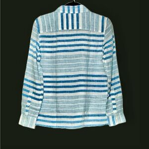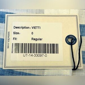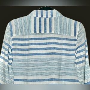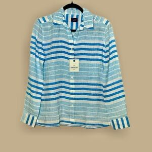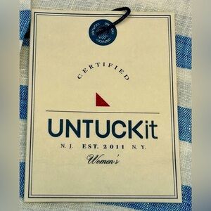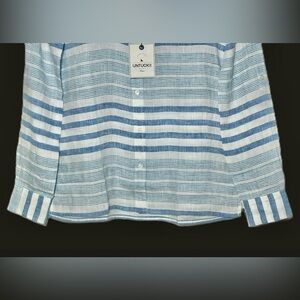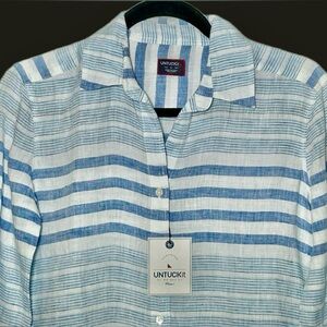 NWT UNTUCKit 100% Linen Vietti Blue & White Patterned Button Down Shirt, Size 0